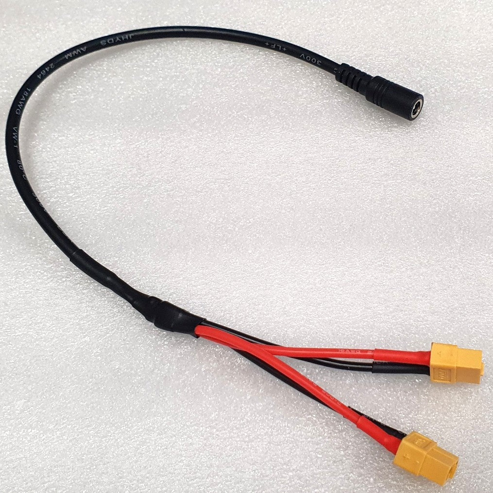 Dual XT60 split adapter cable compatible with RidgeMonkey bait boat lithium batteries. DC jack 5.5x2.1mm...
