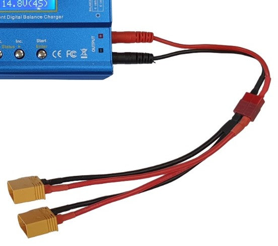 Dual XT60 split cable compatible with iMAX B6 80W RC Lithium Battery Balance Charger